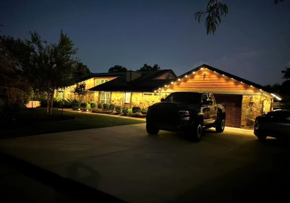 Transform your home with fully customizable outdoor lighting, designed to highlight rooflines, trim, eaves, landscaping, and architectural features. Whether you need permanent Christmas lights, holiday light installation, landscape lighting, or year-round accent lighting, roofio Lights delivers durable solutions built for Oklahoma homes.