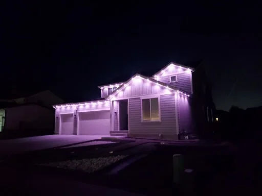 roofio Lights installs permanent LED trim lights that stay up year-round and offer fully customizable colors from our mobile lighting app.